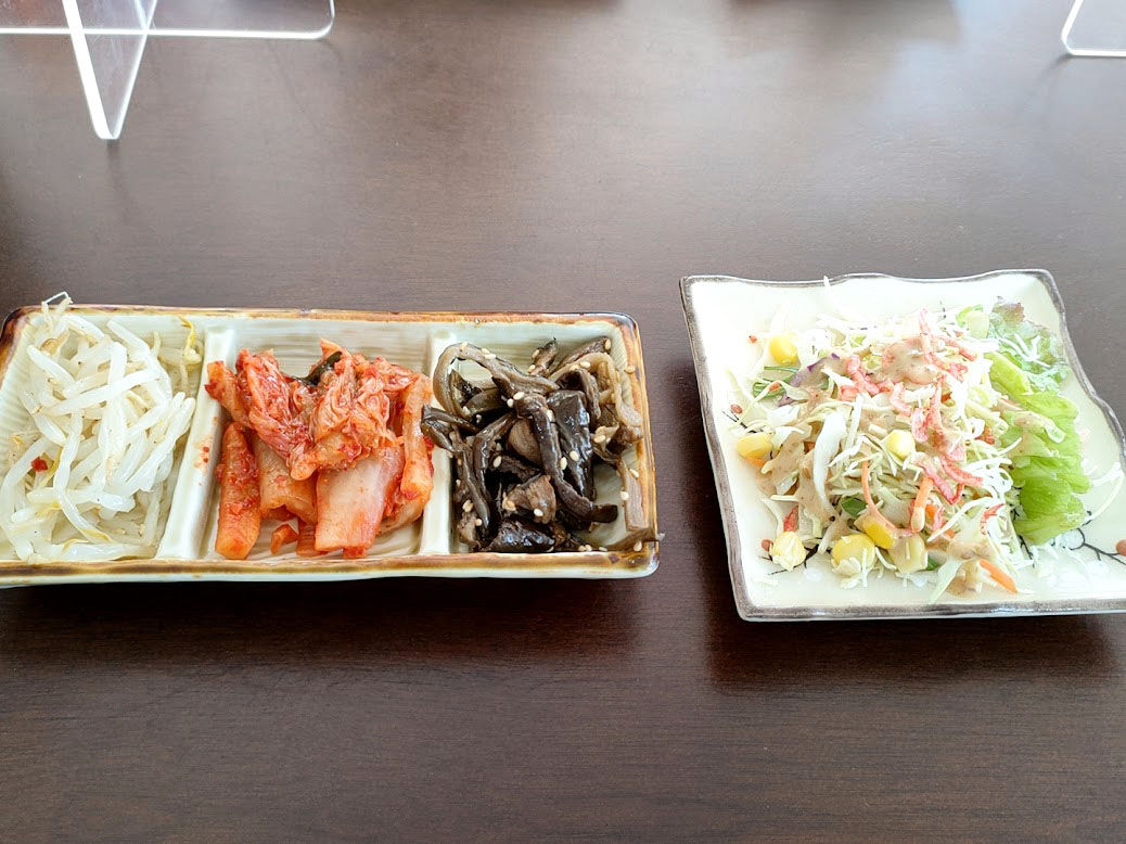 まずはキムチ&ナムル、サラダが着皿!!