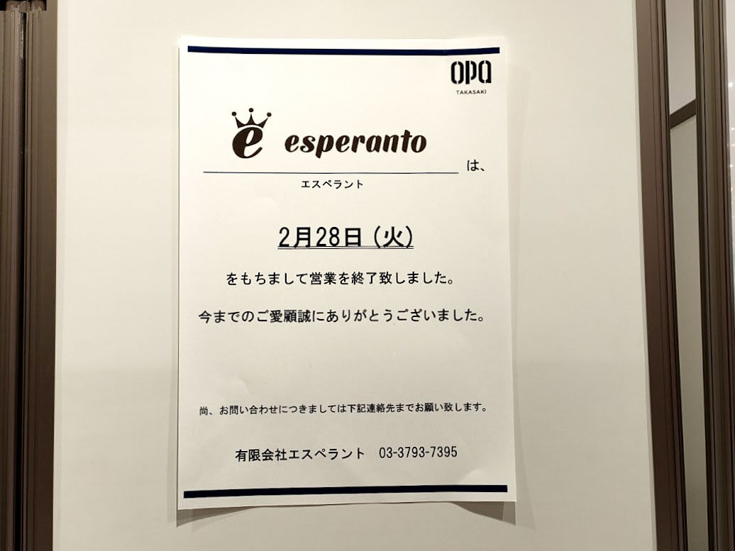 店 名:esperanto 高崎オーパ店(エスペラント)