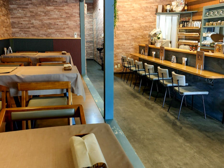店内は、テーブル席、カウンター席。