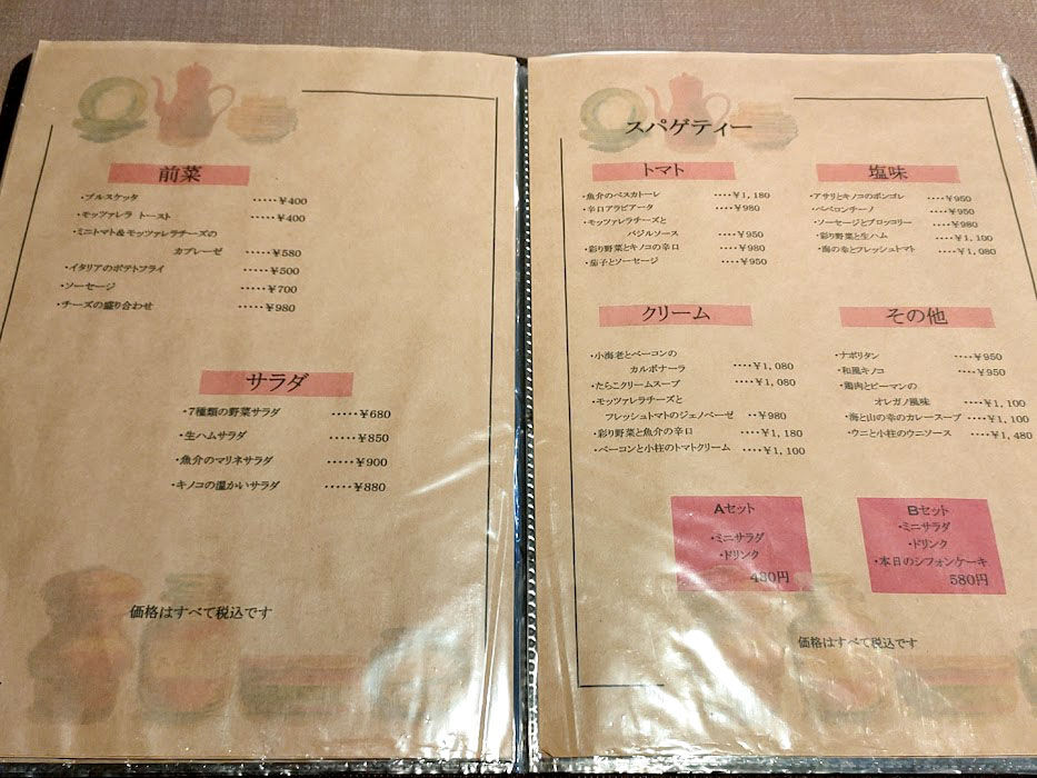 メニュー。