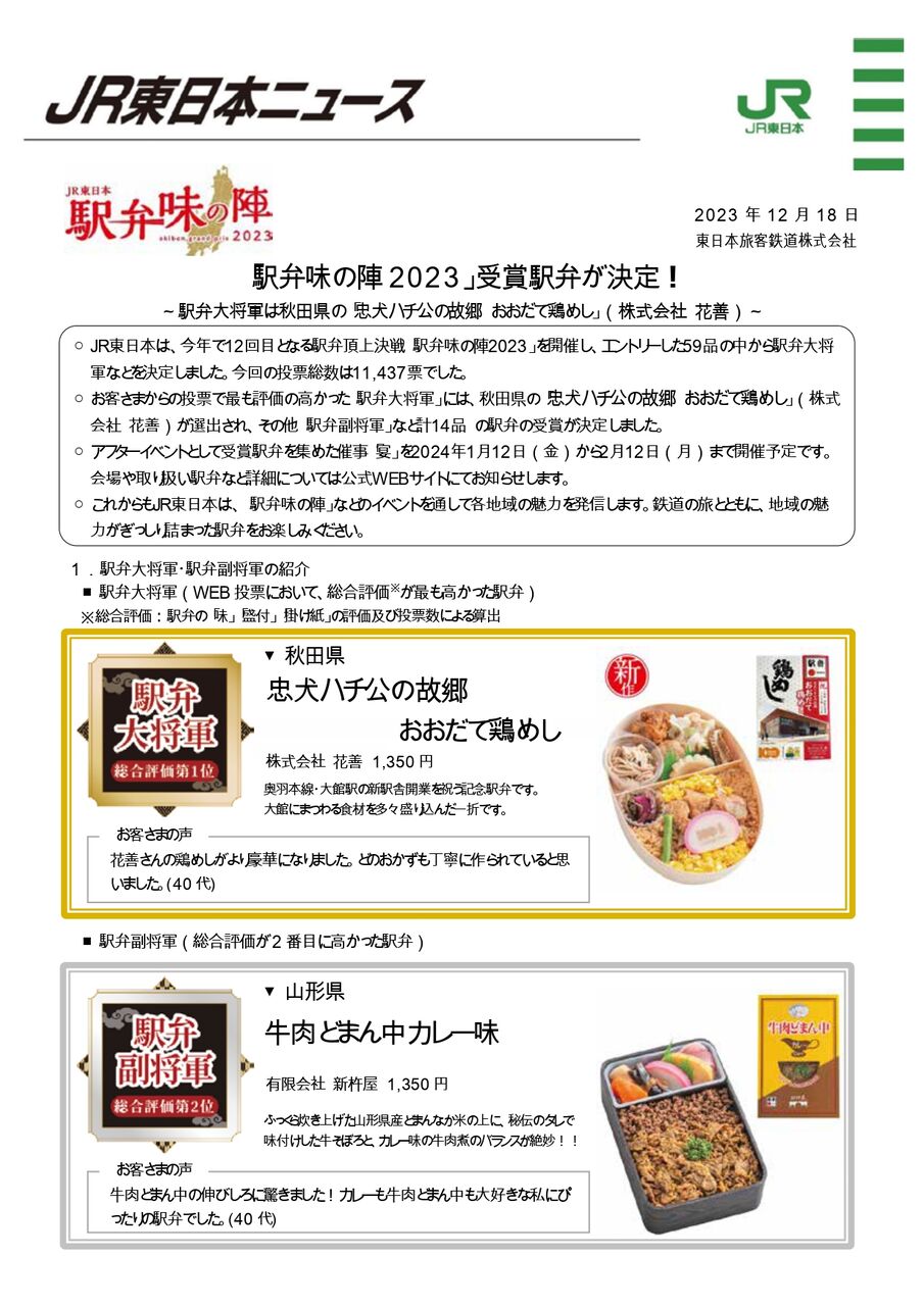 今年の「駅弁大将軍」に輝いたのは