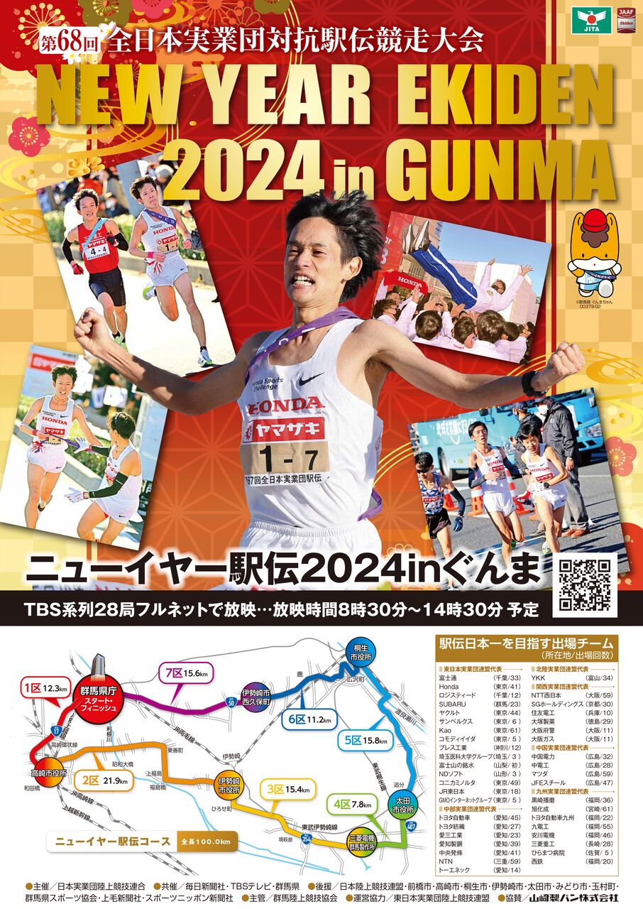 イベント名:ニューイヤー駅伝 2024 in ぐんま(第68回全日本実業団対抗駅伝競走大会)