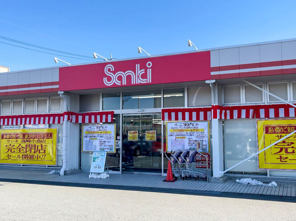 下小鳥町にある衣料品店『ファッション市場 サンキ 高崎小鳥店(Sanki)』が閉店するらしい。