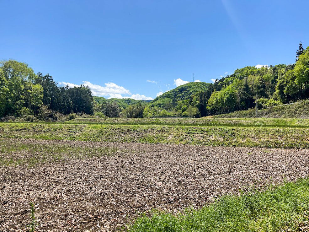 田植え前の田んぼで