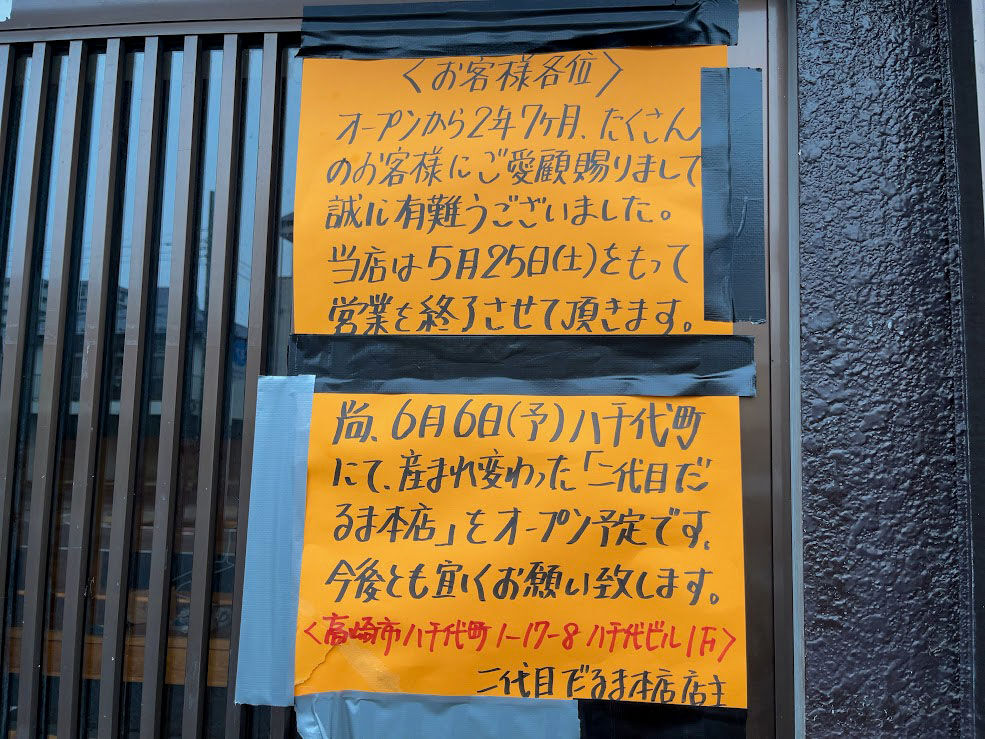 旧店舗は、5月25日に閉店してたみたい。