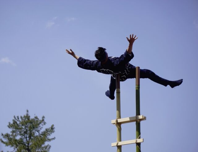 はしご乗り実演や氷彫刻実演、