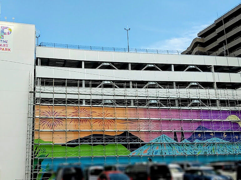 立体駐車場がカラフルなんだ〜!!